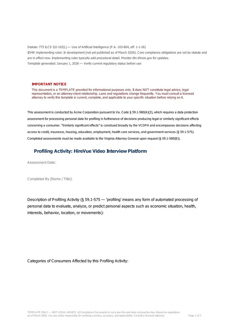 Virginia Profiling & AI Data Protection Assessment Workbook